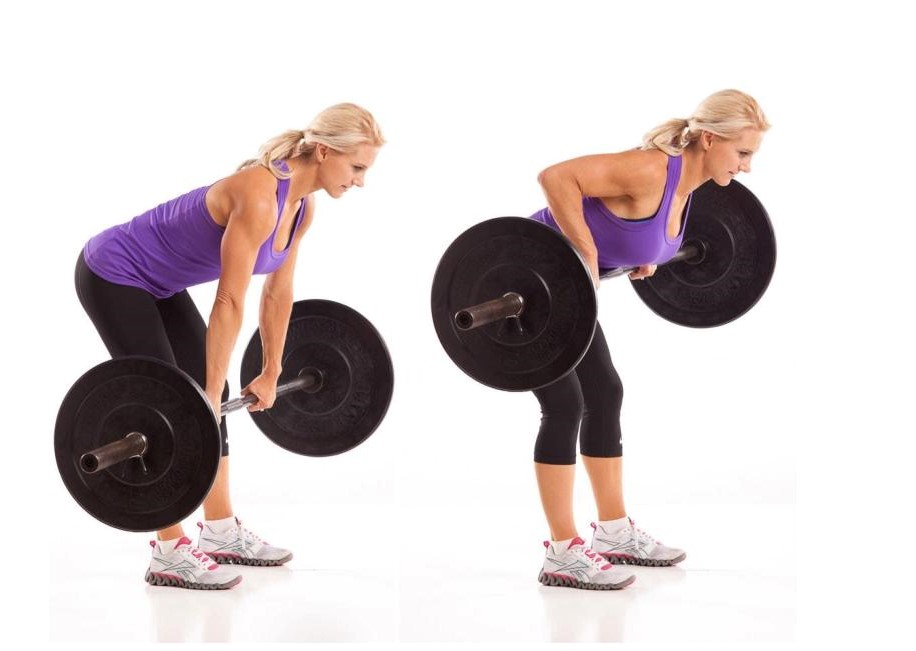 Barbell rows allow you to use more weight than with a dumbbell which is great for building muscle and strength.