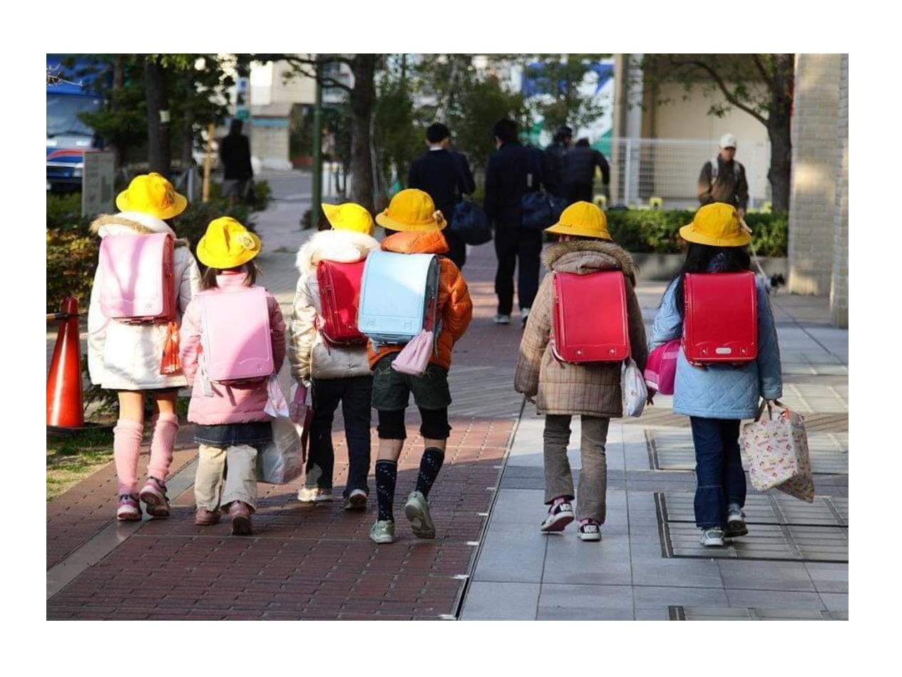 Rain, hail, snow or shine. Walking to school no matter the weather is another example of Japanese children learning from a young age to put up with difficulty and to cooperate as a group.